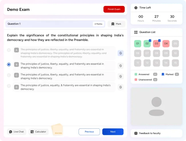 Examini’s sophisticated AI engine builds a secure environment for exam conduction, ensuring fairness for every student while upholding the highest academic standards to enhance your institution’s reputation.
